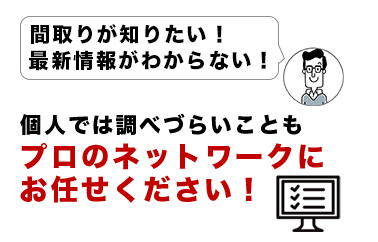 個人では調べづらいことも、プロのネットワークで調査しご報告します。